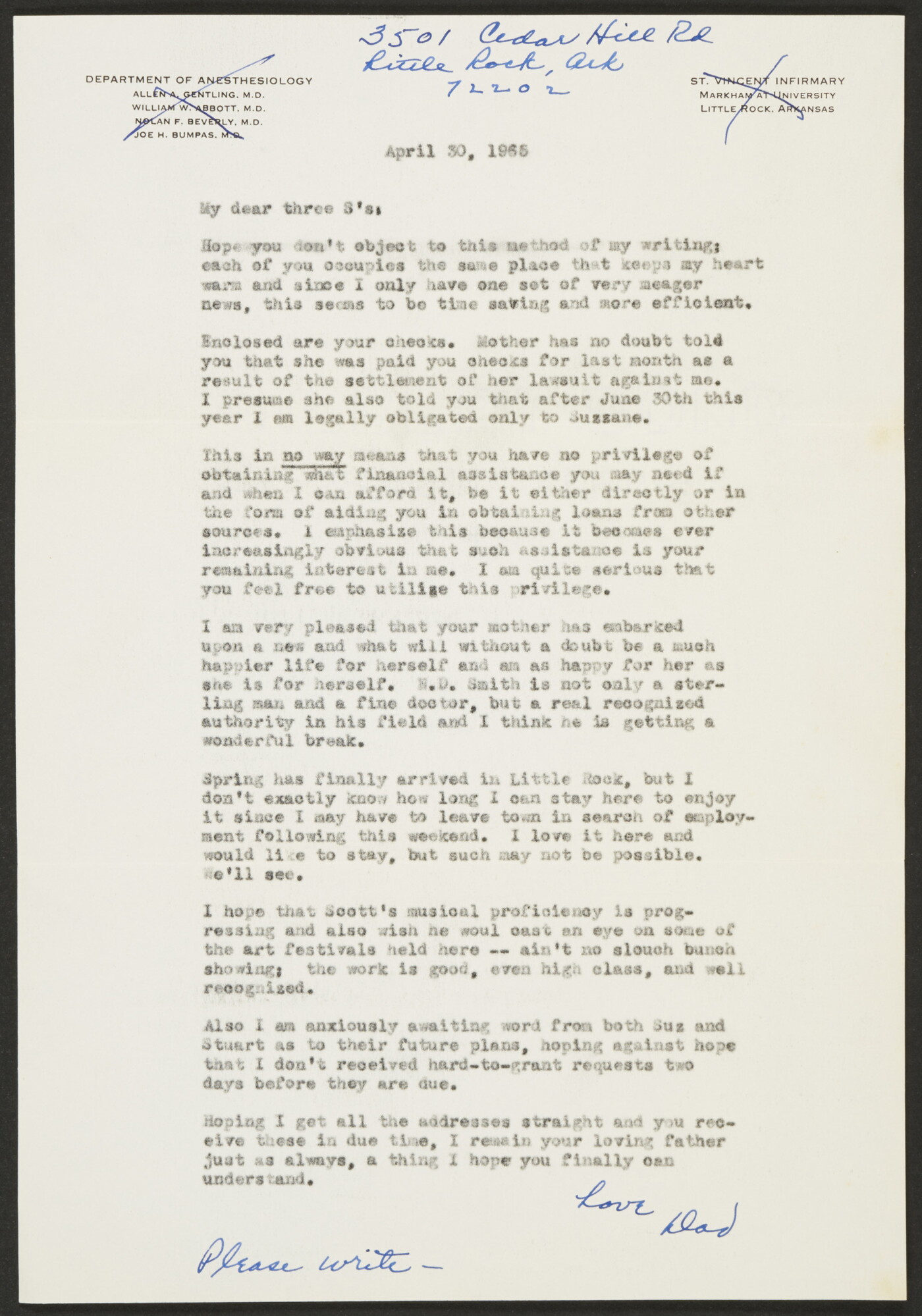 Allen A Gentling Dad Little Rock Arkansas To 3 S S Scott Stuart And Suzie Gentling April 30 1965 Amon Carter Museum Of American Art